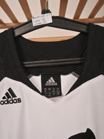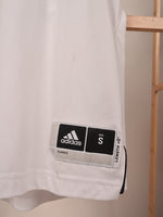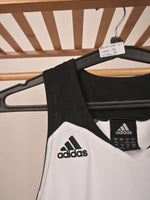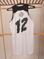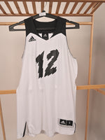 Brand: Adidas Item: Sleeveless jersey/tank top Color: White with black details, including the number "12" and the Adidas logos. Size: Small (S) Design: The jersey has a black collar and shoulder trim, with the number "12" prominently displayed in black...