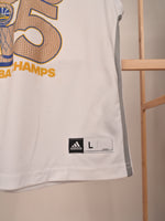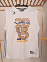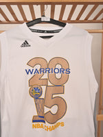 Brand: Adidas Team: Golden State Warriors Design: The front features "WARRIORS" above a logo integrated into the number "2015," with "NBA CHAMPS" at the bottom. Player Association: The jersey is associated with Stephen Curry, the team's star player who...