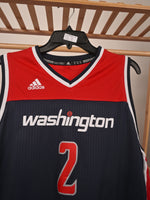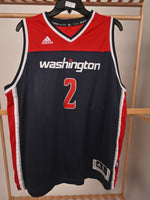 Team: Washington Wizards Player: John Wall Number: 2 Brand: Adidas Color Scheme: The jersey is primarily a dark navy blue with red and white trim. The word "washington" is written in white across the chest, with the number "2" in red...