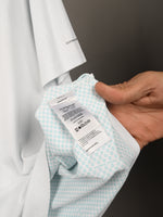 Checked stitching, buttons, zippers, and prints